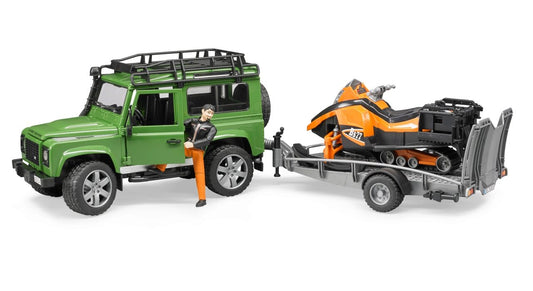 BRUDER 02594 Land Rover Defender mit Snowmobil Station Wagon, Profi-Serie